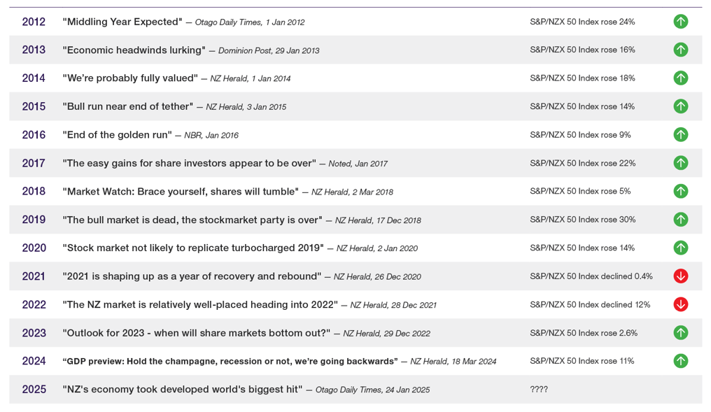 To illustrate this, the following list of headlines from New Zealand news outlets demonstrates how forecasts, even those provided by supposed experts, can be unreliable.