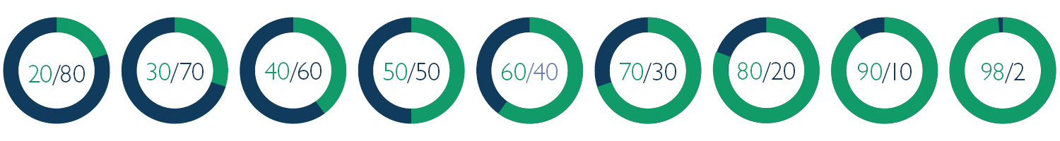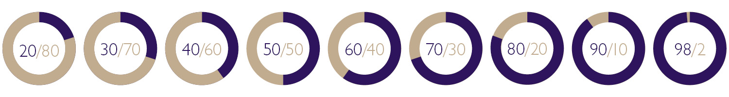 Our portfolios offer risk levels ranging from very defensive (80% fixed interest) to very aggressive (pure equities) and include solutions that can cater to investors with a preference to invest with a Socially Responsible mandate.